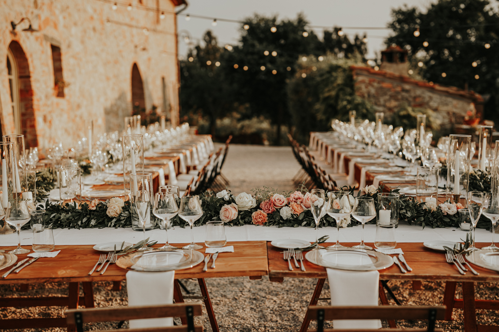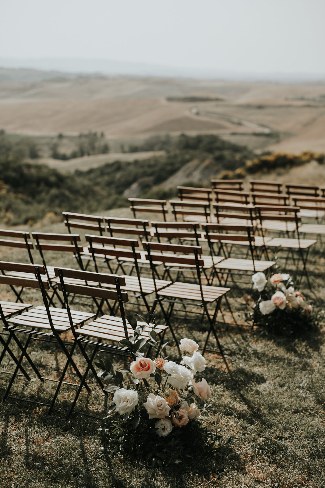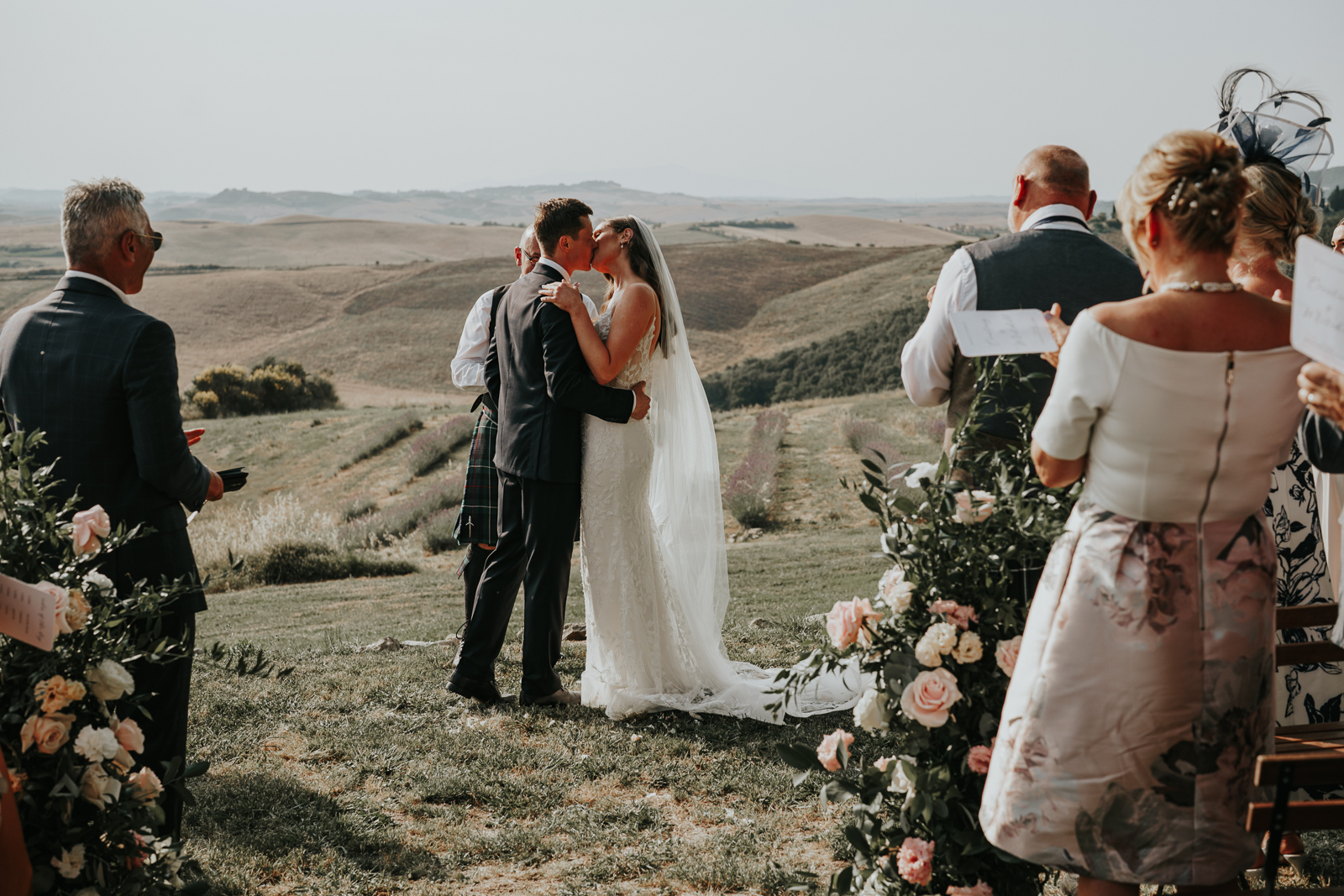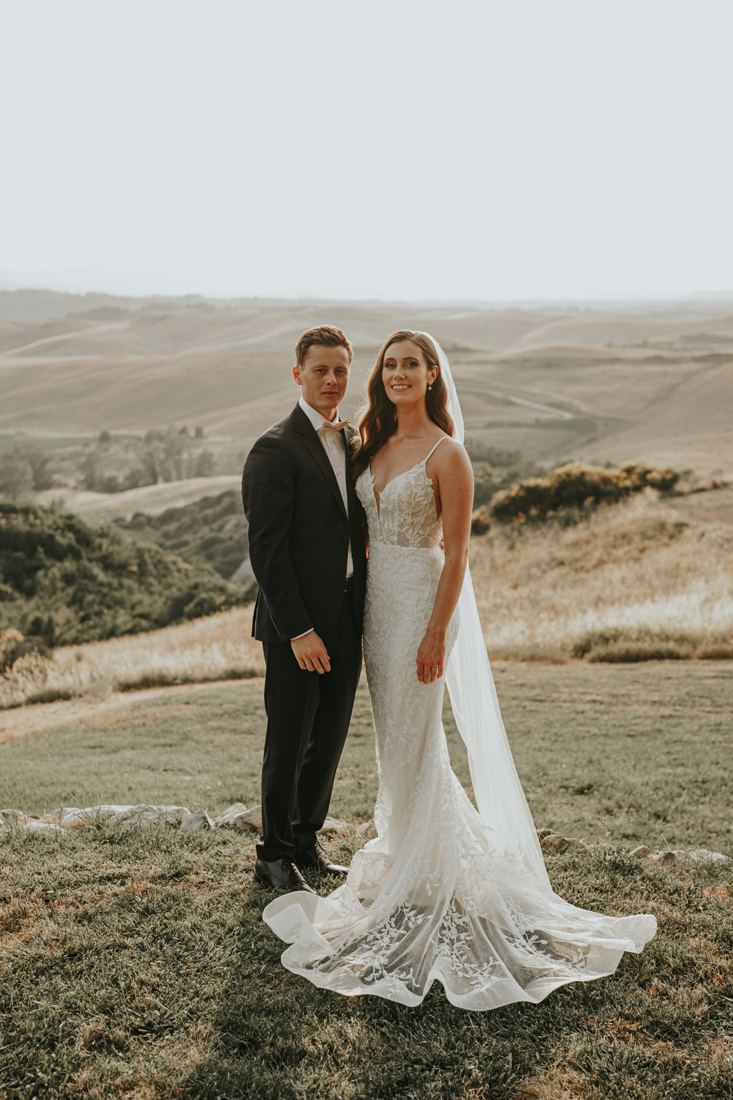 Mitch and Courtney, a love celebrated in the magical location of Le Capanne in Volterra, amidst the enchanting hills of Tuscany.