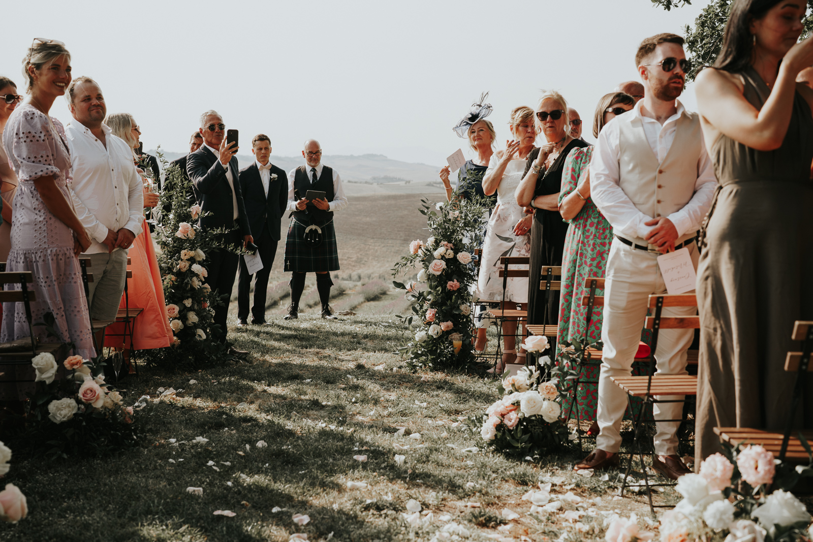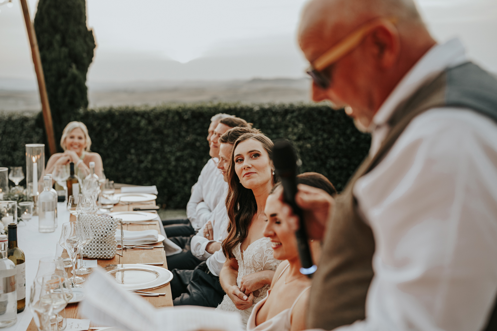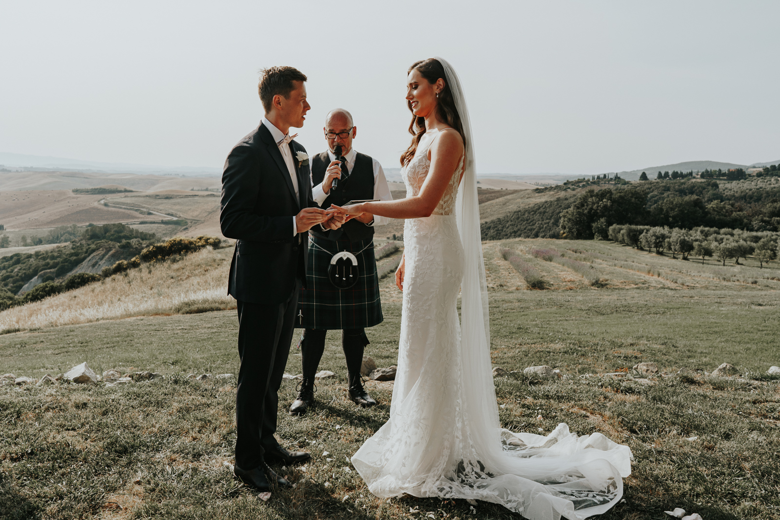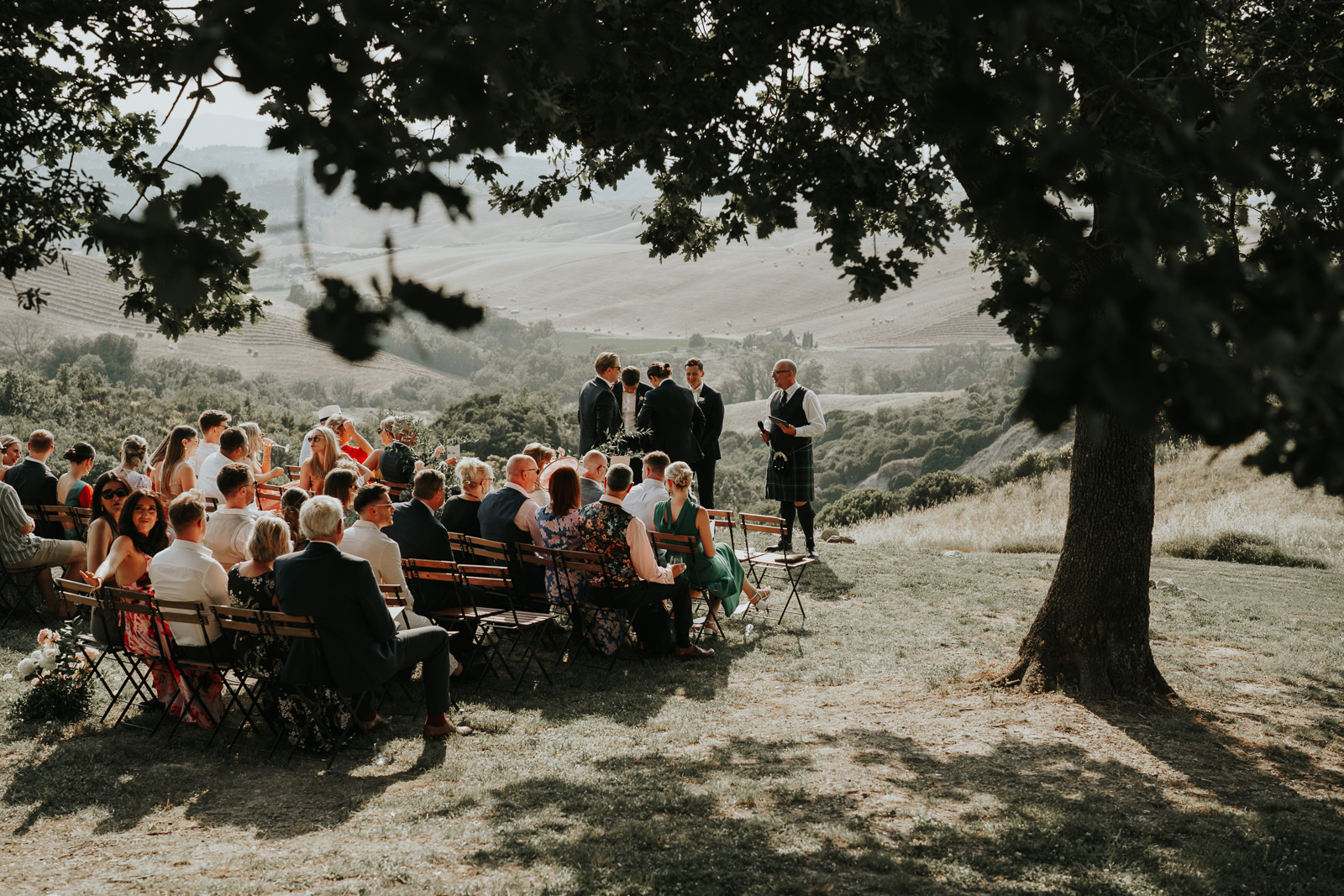 Mitch and Courtney, a love celebrated in the magical location of Le Capanne in Volterra, amidst the enchanting hills of Tuscany.